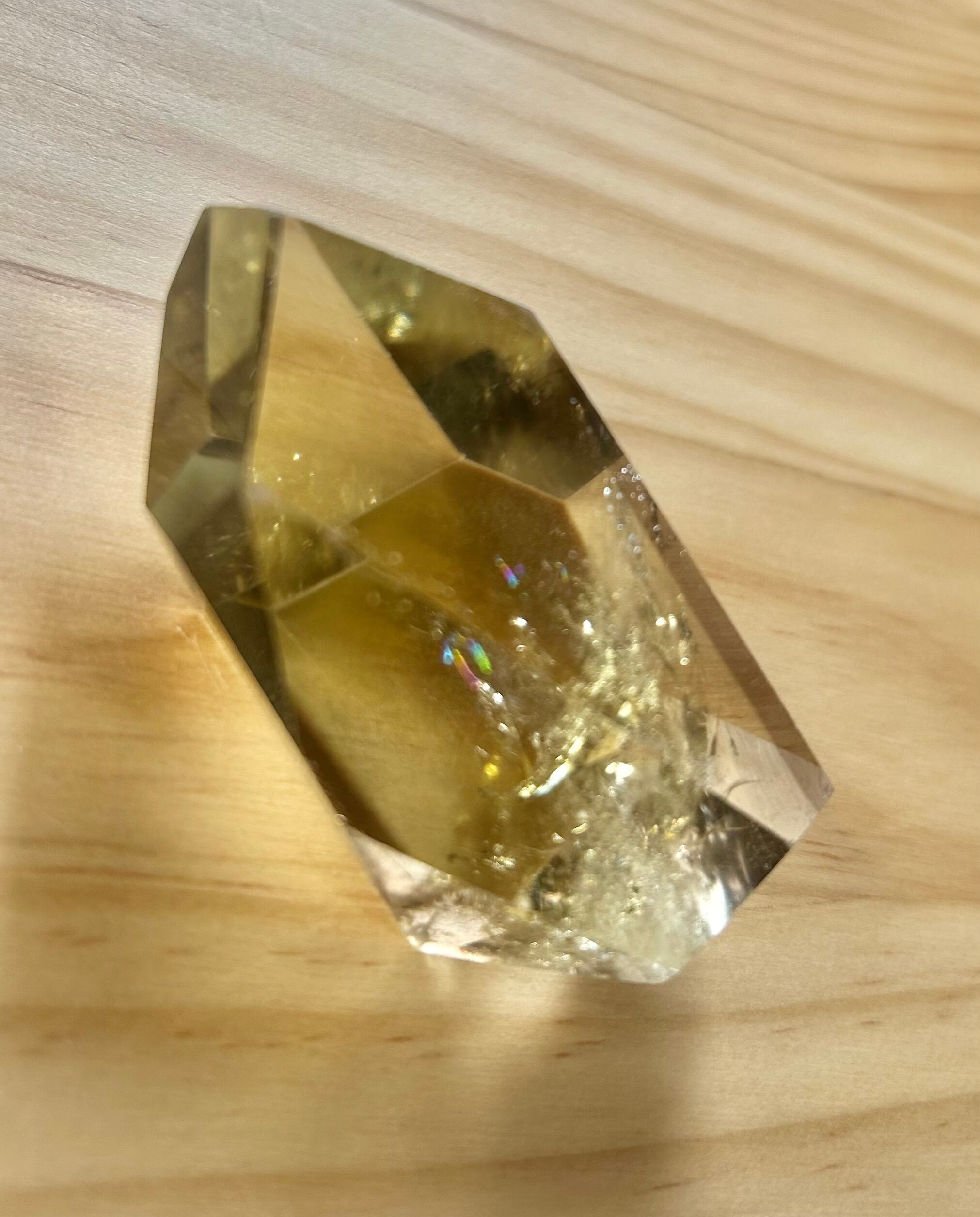 やさしい蜂蜜色の透明な光が、見る角度によって虹を返します。