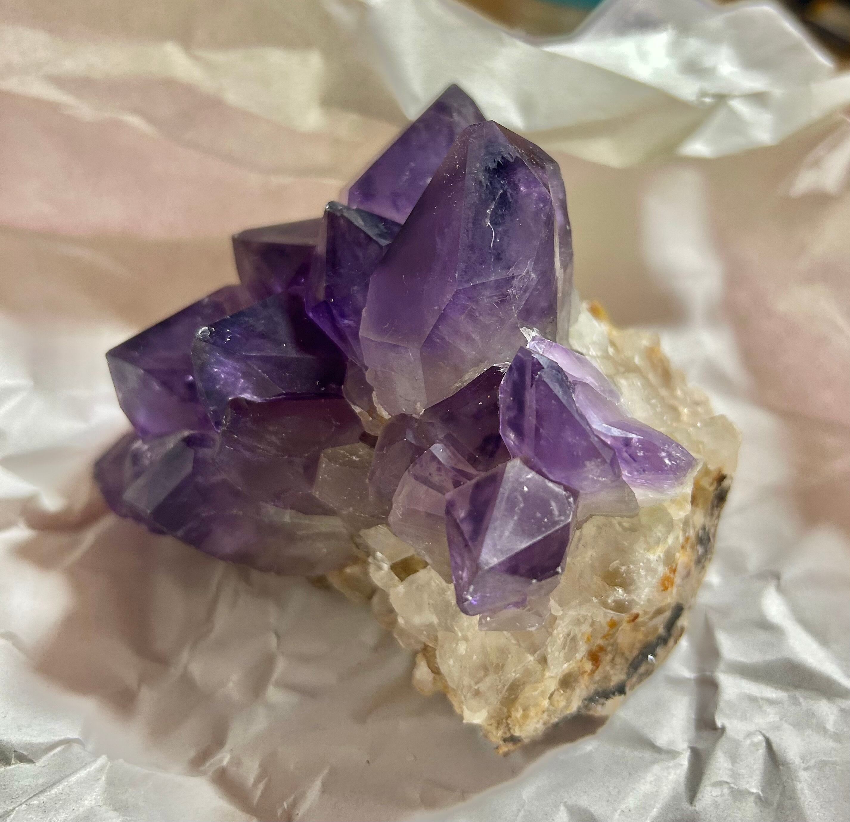 ブラジル産の最高峰、ディープパープルの輝きを放つスーパーセブンの原石クラスターです。