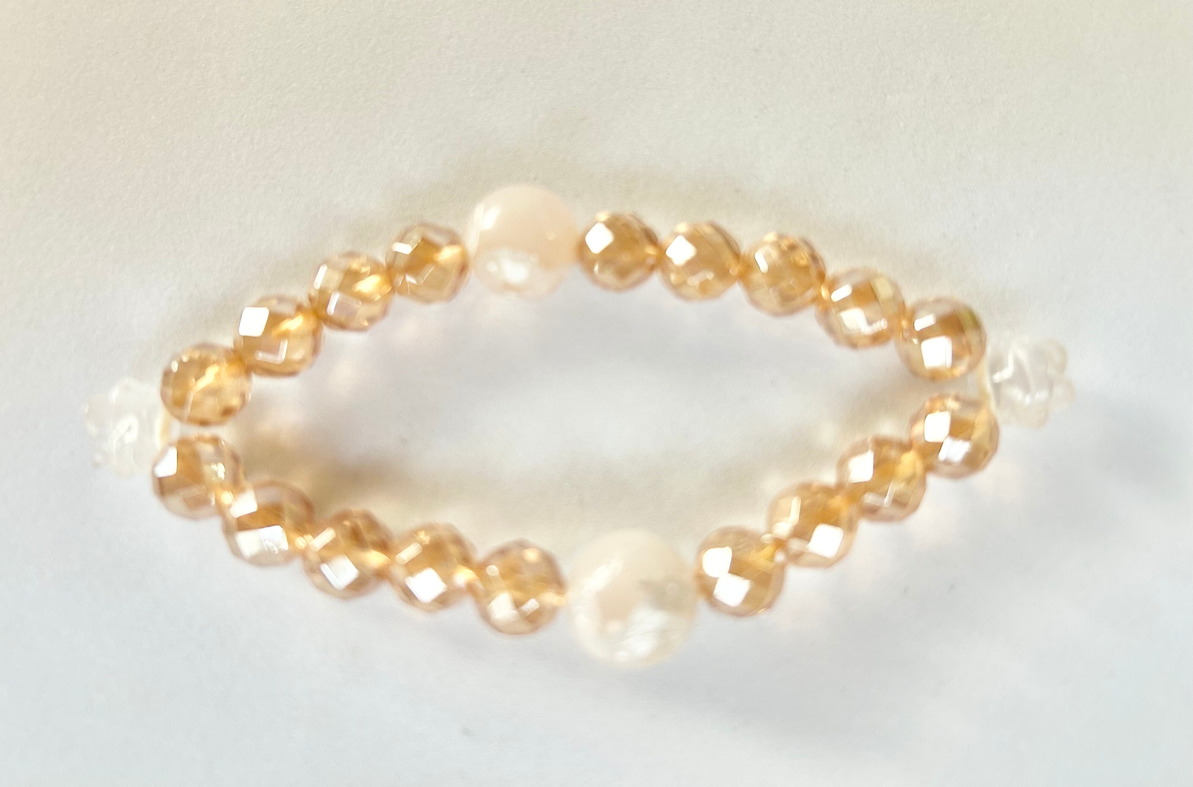 巳ローズクォーツ薔薇カット水晶 ブレスレット